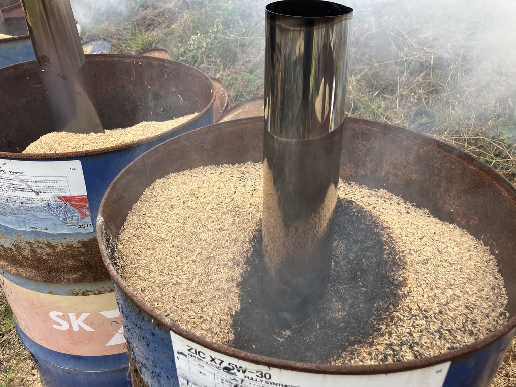 我が家の『こだわり米』栽培の大きな特徴の一つである、自家製の籾殻燻炭肥料づくりを今年もスタートしました!