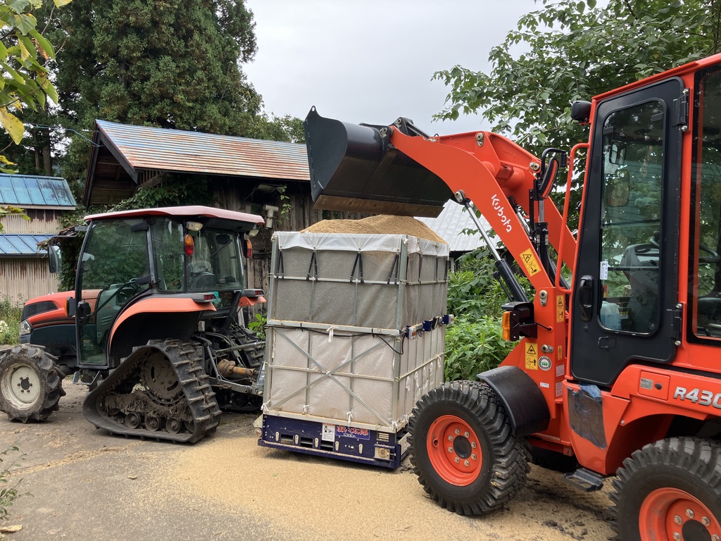 今年は、大量に出た籾殻をそのまま田んぼに直接散布しています。