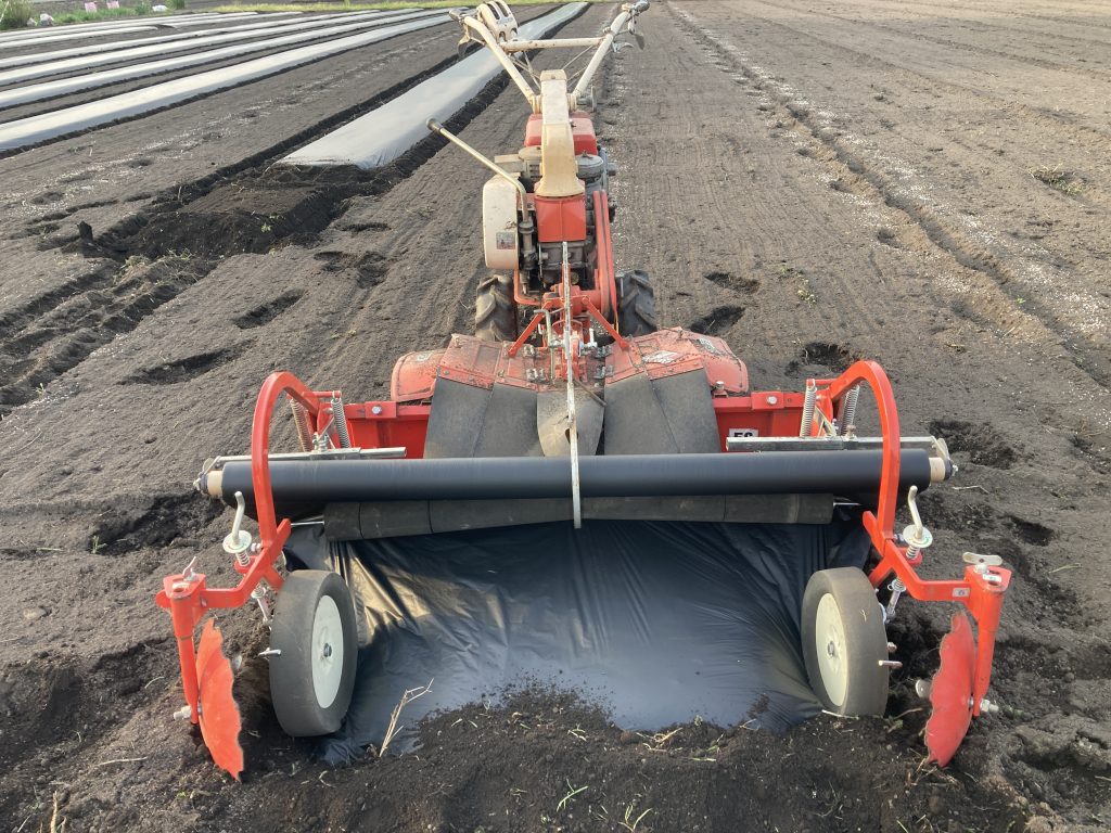 畑の準備は一通りできています。肥料も堆肥も撒き、耕起もずいぶん前にできています。なんとか時間をやりくりして、マルチ張りも終了しています。