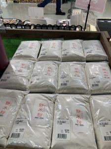 今年の米粉使用米は美郷錦、淡雪こまち、餅米きぬのはだ の2番米を上白で2回精米した後で製粉&粉体わけしています。65〜80メッシュ では正直ちょっと着色米や未熟米の影響で黒っぽい粒が見受けられます。粉体が細かくなるにつれ白い粉になっていきます。ですので、粉体の細かさによって価格を設定しました。基準は直売所の他の農家、生産者さんの米粉(粉体分けしていない物)の価格と当家の80〜100メッシュ 品が同じになるようにしています。(製造費用的にも折り合いつくし)