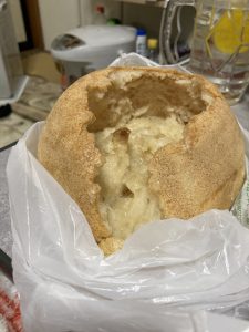何回やってもこんな感じで、側はそれぽくなるんですが、中が空洞で底の方に餅化したお米がある感じになっちゃいます。一応グルテンを入れて作る方法も試しましたが。グルテンを混ぜるというより米粉を混ぜるという比率になっていくと感じて途中で断念しました(・_・;