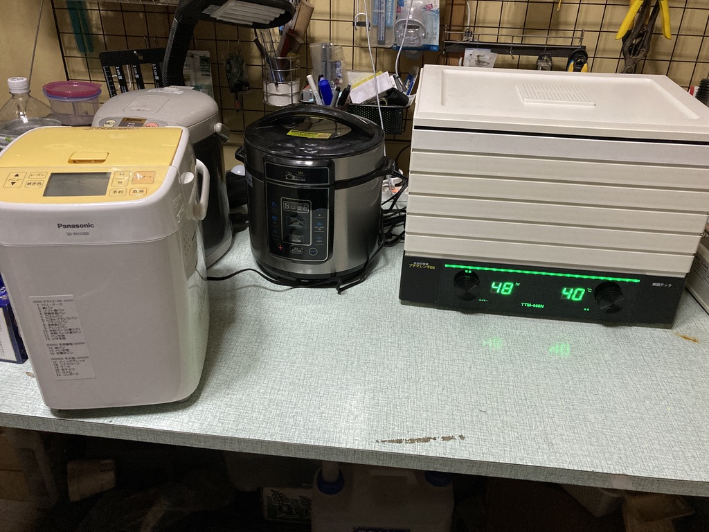 こちらは中古で購入した「ゴパン」というホームベーカリー機です。あまりもののご飯でパンが焼けるということで有名になった機体です。